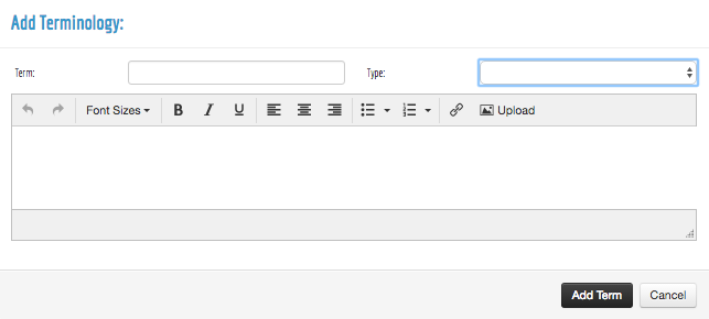 + Add New Type: This allows you to create new "folders" for your terminology. For example, you might want to create a new term category called "Drills" to begin building out diagrams and video pages for drills that you run in practice.